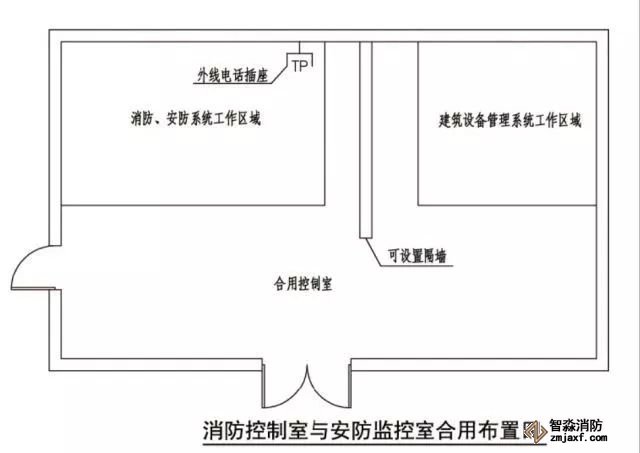 (5)與建筑其他弱電系統(tǒng)合用的消防控制室內(nèi),消防設(shè)備應(yīng)集中設(shè)置,并應(yīng)與其他設(shè)備間有明顯間隔。