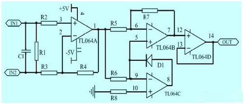 電壓檢測由線性光隔器、運算放大器和整流濾波電路路組成。由于探測器對電壓的精度要求不高,采用光隔器可以大大減小系統(tǒng)的體積。