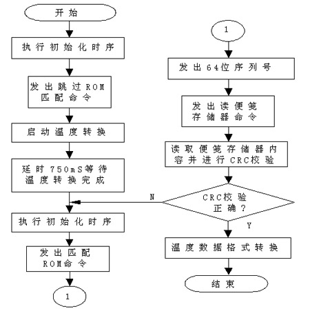 圖5 基于1-Wire技術(shù)的DS18B20溫度采集與處理程序流程圖