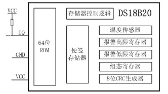圖1 1-Wire技術(shù)的溫度傳感器DS18B20功能塊圖