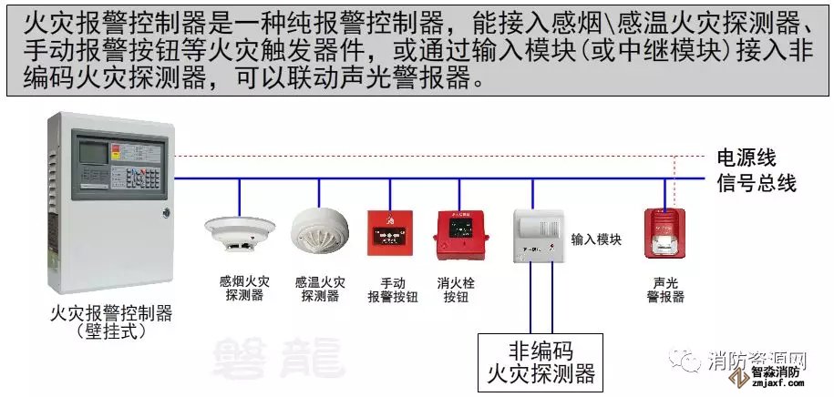 火災(zāi)報(bào)警控制器是一種純報(bào)警控制器,通常采用壁掛式主機(jī),能接入感煙感溫火災(zāi)探測(cè)器、手動(dòng)報(bào)警按鈕等火災(zāi)觸發(fā)器件,或通過輸入模塊接入非編碼火災(zāi)探測(cè)器,也可以控制簡(jiǎn)單的聯(lián)動(dòng)設(shè)備(聲光警報(bào)器等)。